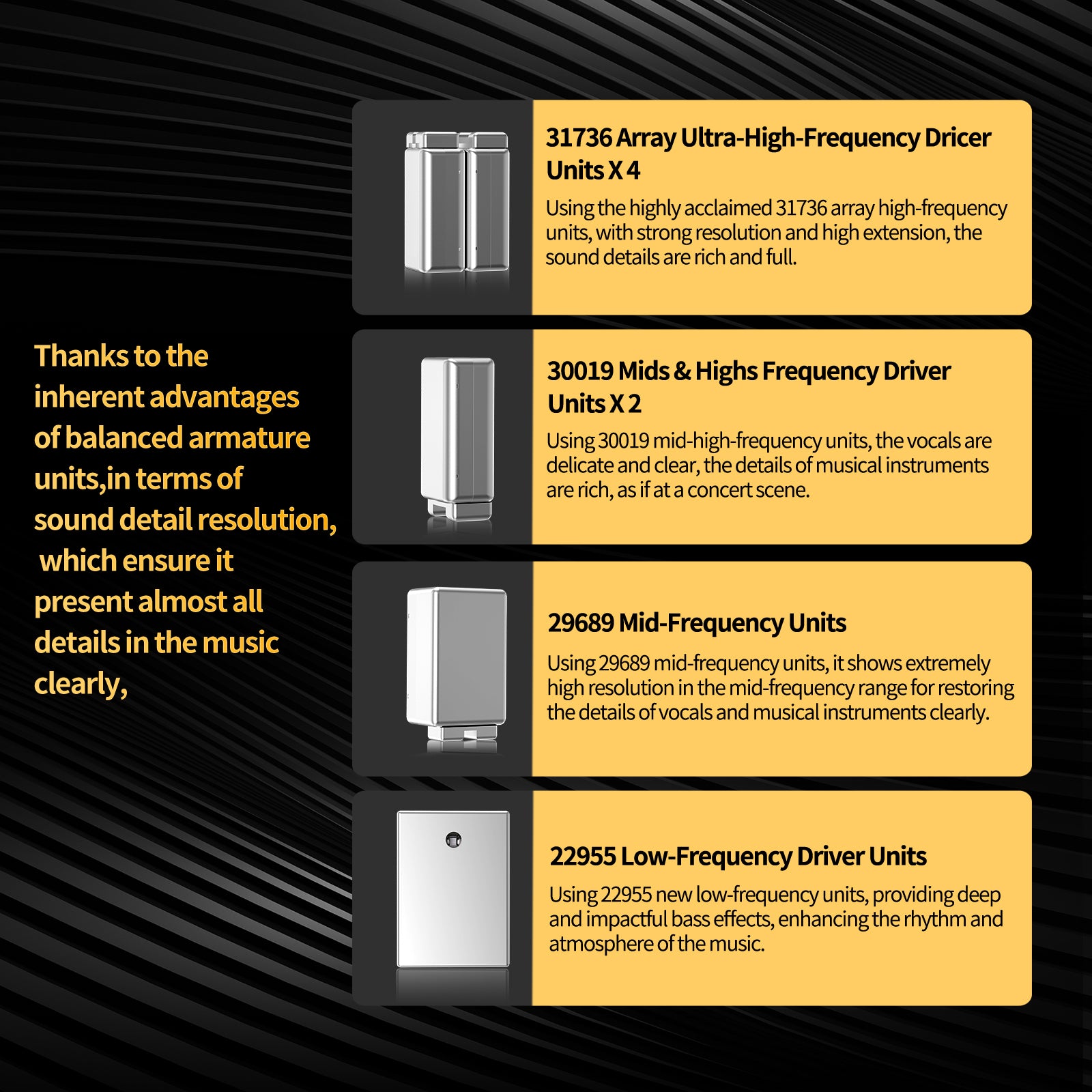 カスタマイズされたバランスド・アーマチュア・ドライバーは、より高い解像度、より広い周波数応答、より速いトランジェントを実現し、あらゆる音楽の細部を正確に再現します。